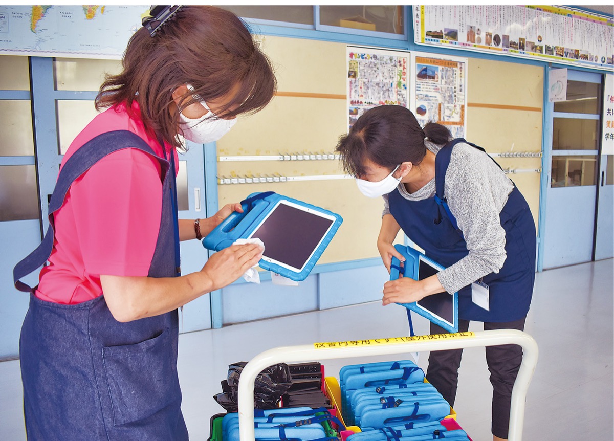 7月から非常勤講師と業務アシスタントを増やした緑園東小学校(泉区)では、非常勤講師が個々に支援が必要な児童へのサポートを担う。2人に増えた業務アシスタントは学校共用部やタブレット端末などの消毒も担当し、空いた時間で担任から依頼された教材を作成。これにより、担任が児童と向き合える時間が増えているという。同校の副島江理子校長は「増員のおかげで質の高い教育活動が担保できている」と話す。
