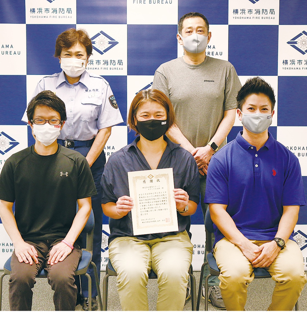 スポーツジムの「東急スポーツオアシス上大岡」(上大岡西3の9の1)のスタッフが運動中に意識を失った男性の救命に貢献したとして、8月27日に港南消防署から感謝状が贈られた。