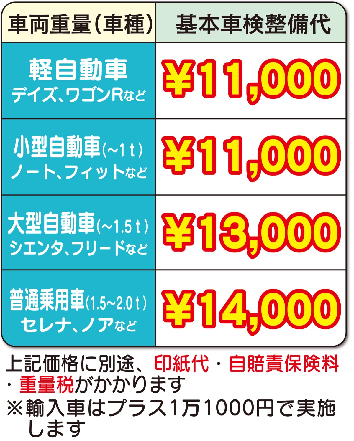 その理由はなんといっても車検整備代が1万1000円〜(重量による、詳細は左下表)という驚きの値段。「関東運輸局長認証工場」で、その設備やスタッフの技術力も任せて安心。車検が終了した日から6カ月以内、もしくは走行距離が1万Km以内の保証期間中であれば、万が一不具合が生じても無料で修理してくれる。「立ち合い車検見積り、完全予約制でお待たせしません。不要な部品交換などもしないのでご安心を」とスタッフ。さらに代車完備でサポート体制も万全だ。