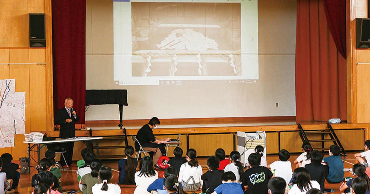 港南区の桜岡小学校で9月29日、不動産業を営み、地元に代々ゆかりがある山野井正郎さんが講師となり、同小の6年生児童105人が参加して「上大岡の今・昔」と題した特別授業を行った。