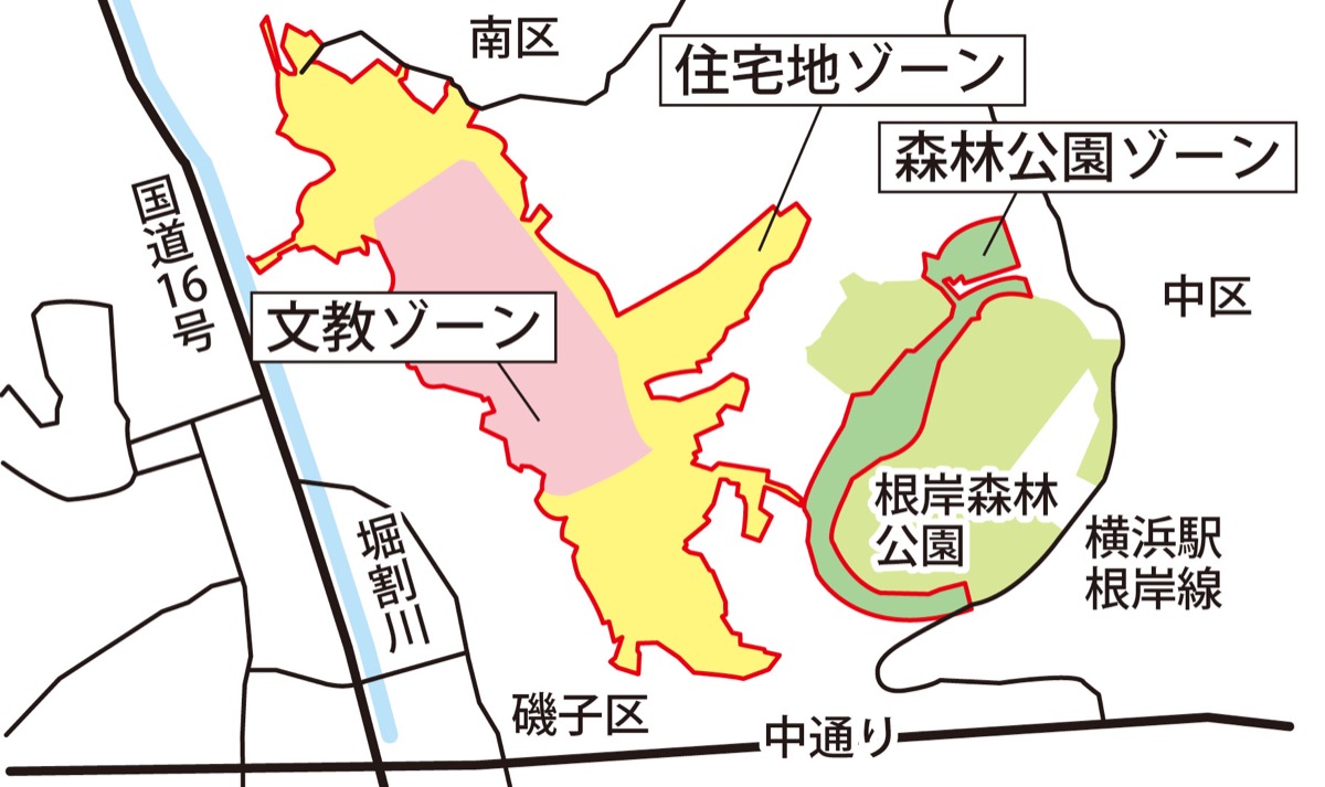 具体的な土地利用計画としては、跡地を「文教」「住宅地等」「森林公園」の3地域にゾーニング。約15ヘクタールの文教ゾーンは市大医学部と市大附属病院(金沢区福浦)、市大附属市民総合医療センター(南区浦舟町)を再整備する最有力候補地となっている。