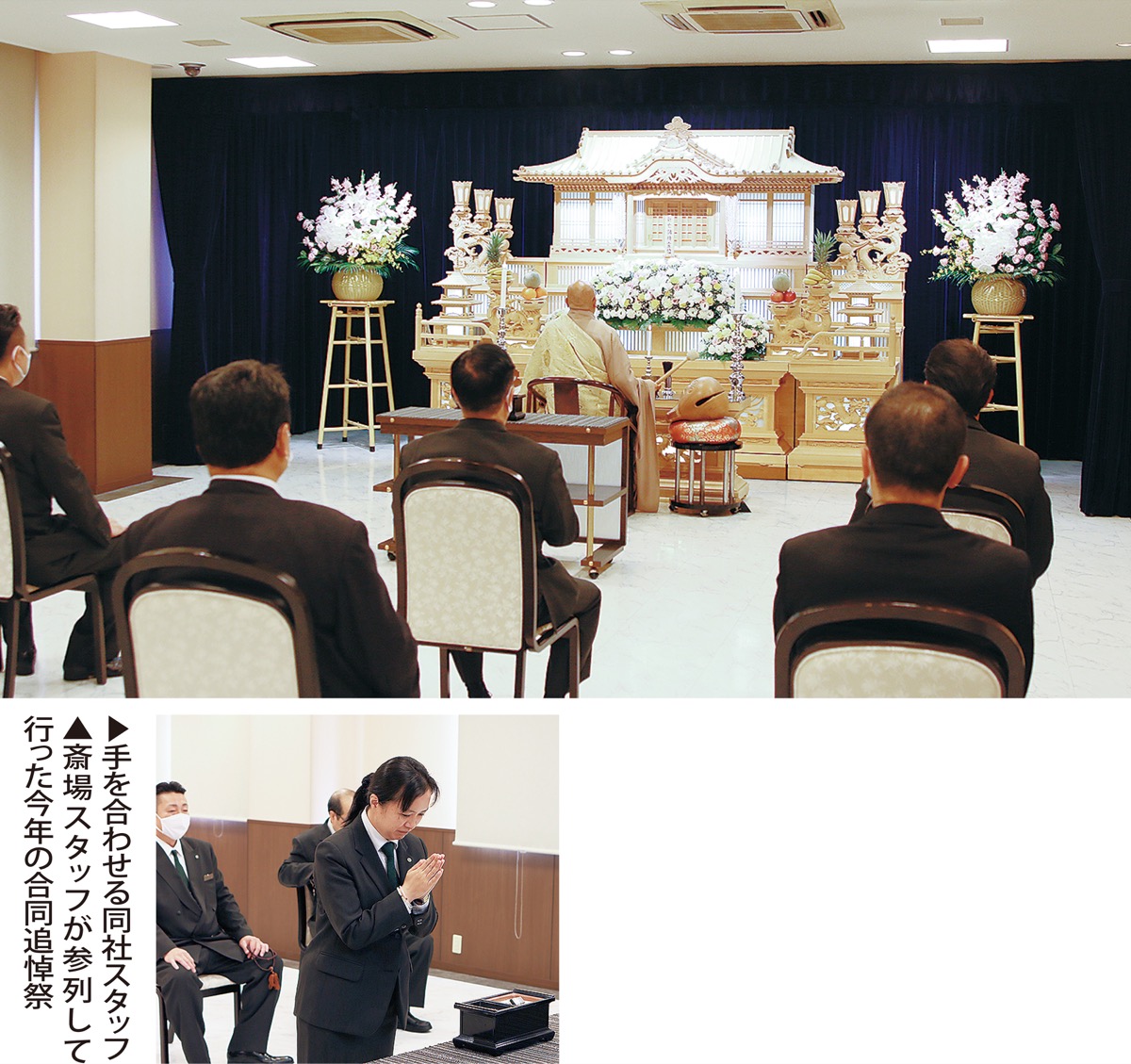 葬儀会社・京急メモリアルは毎年、1年間のうちに葬儀を行った家族を対象に「合同追悼祭」を実施している。改めて故人をしのぶ場としているほか斎場スタッフを交えた懇親会などがあるが、今年は感染拡大防止のため、11月3日に斎場スタッフのみで追悼祭を執り行った。
