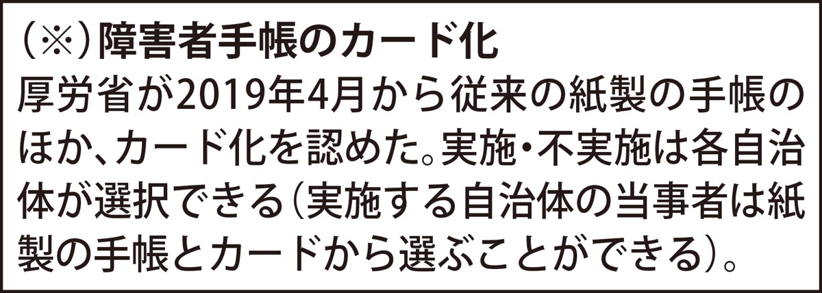 一方で機能面は現状と大差がなく、市内で暮らす内部障害者の一人は「持ち運びやすくなるかもしれないが、現状の手帳で不便はないからそのまま使うつもり」。また、聴覚障害者の一人は「同じ手帳を長年使い続けている人もおり、カード化を歓迎する声もある」としつつも、「単なるカードではなく、ICチップが入ってかざして使えるなど、機能性が高いとよかった」と語る。