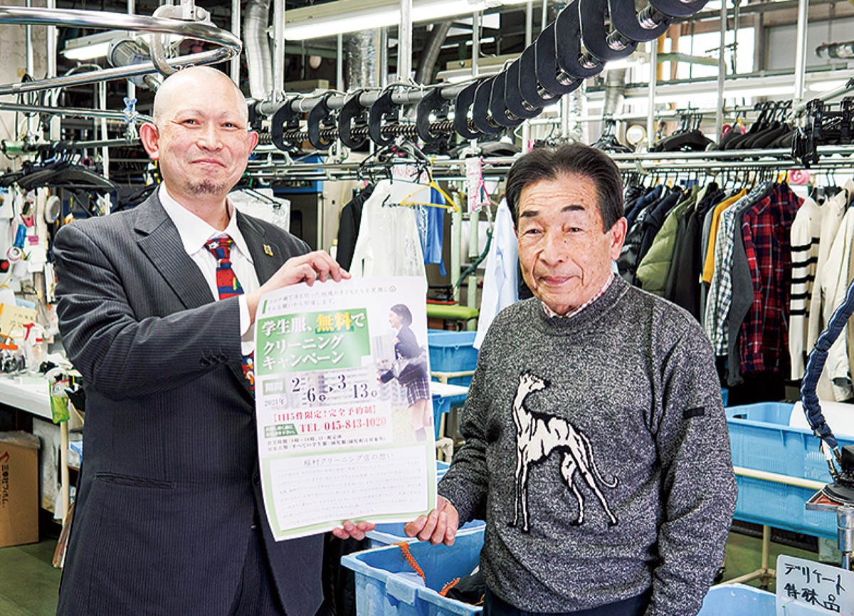 コロナ禍で大きな影響を受けた子どもたちにきれいな制服を--。全国のクリーニング店で子育て支援として学生服などを無料でクリーニングする取組が広がっている。港南区に本社を置く(有)稲村クリーニング店もその一つ。2月6日から開始し、3月13日まで続けるという。