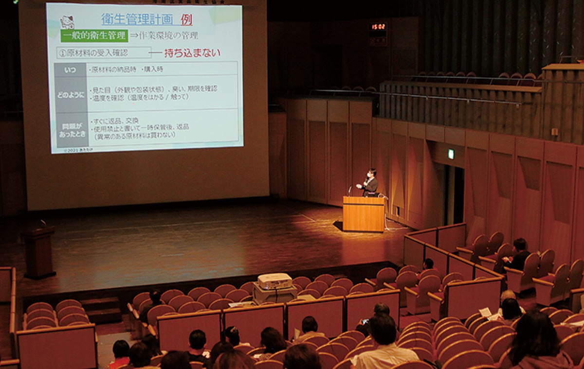 港南区食品衛生協会では飲食店に向け、3年前から制度周知のための勉強会に取り組んできた。3月19日の食品衛生責任者指定講習の場でも外部講師を招いて改めて会員の制度理解を深めた。