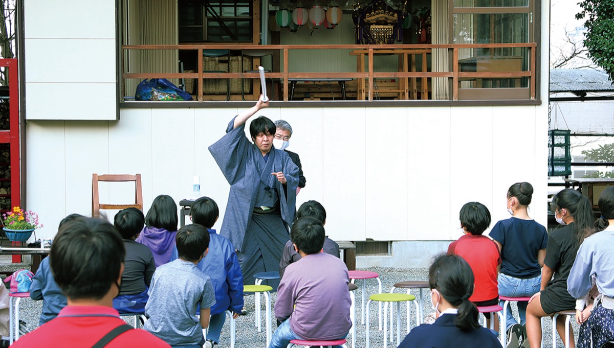 港南区港南の天照大神(松本小寿恵宮司)で3月26日、小学生やその保護者を対象にした歌舞伎講座が開かれた。