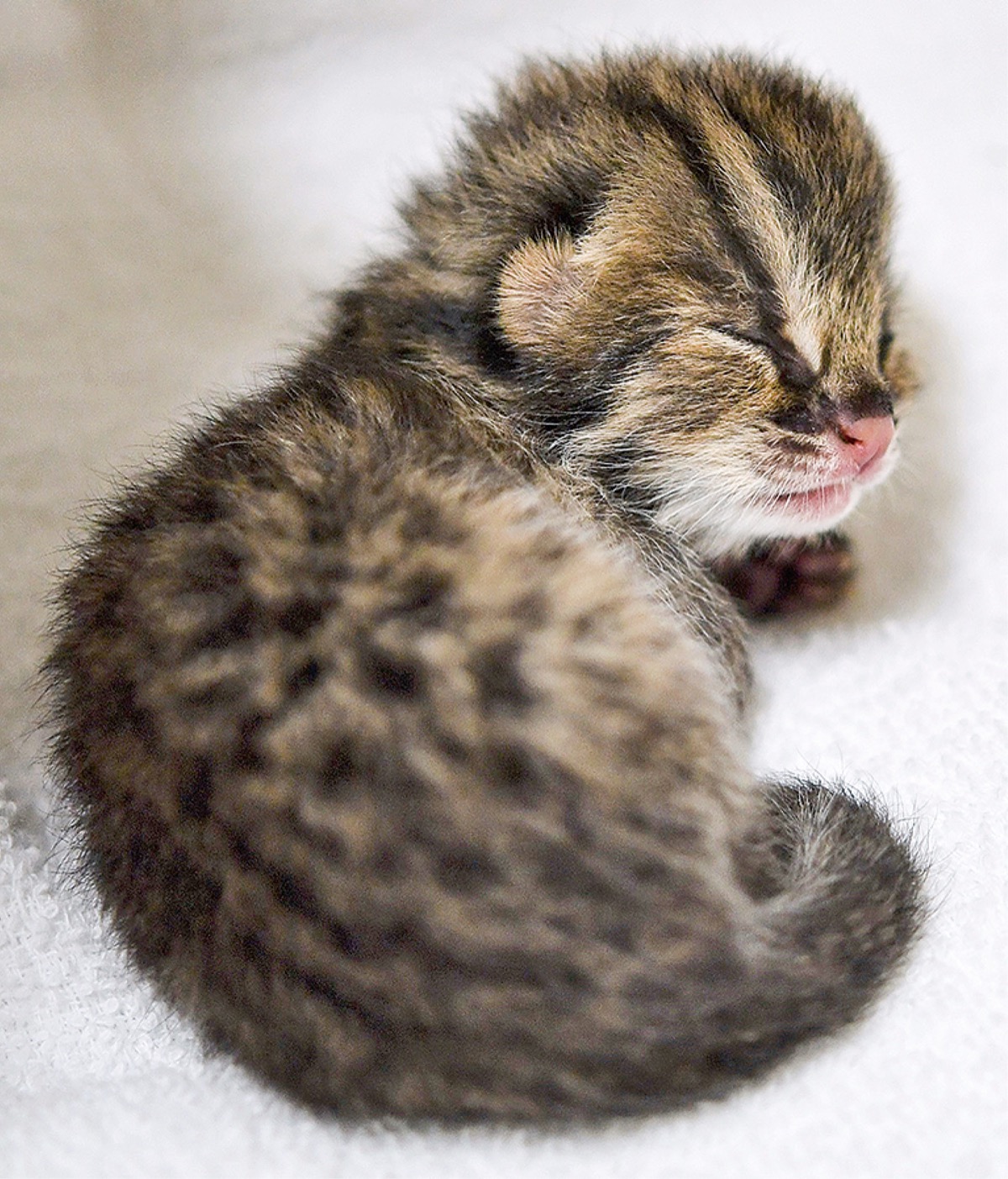 絶滅危惧種に指定される「ツシマヤマネコ」の人工繁殖に2019年度から取り組んできたよこはま動物園ズーラシア(旭区)で3月18日、同種の赤ちゃんが誕生した。人工授精による繁殖成功は国内初で、同園でツシマヤマネコが繁殖したのは今回が初めて。