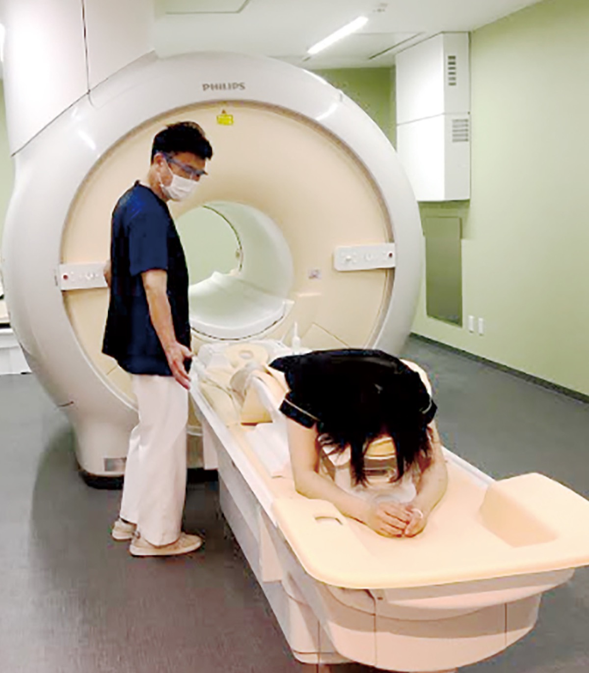 中島 乳がん検診は胸を圧迫するマンモグラフィ検査が一般的ですが、痛みが強く敬遠する方も多くいます。そこで「無痛MRI乳がん検診」(ドゥイブス)を導入しました。MRIを使用するのでX線の被ばくがなく、衣服を着たまま、圧迫しない状態で撮影されるので痛くありません。また、胸にインプラント(人工物)を入れている方でも検査できます。