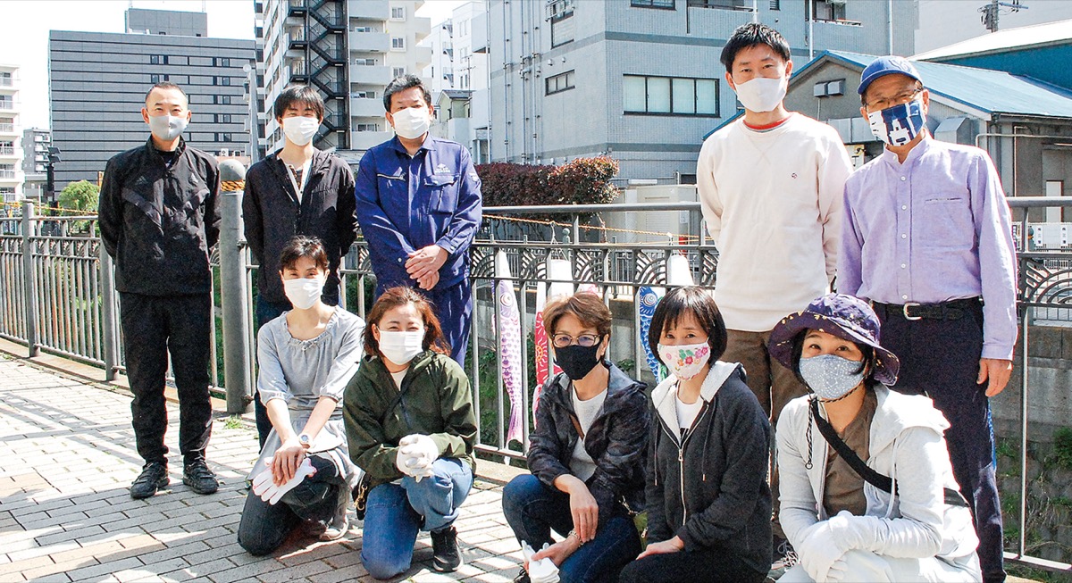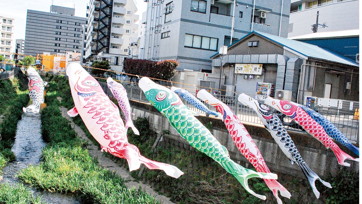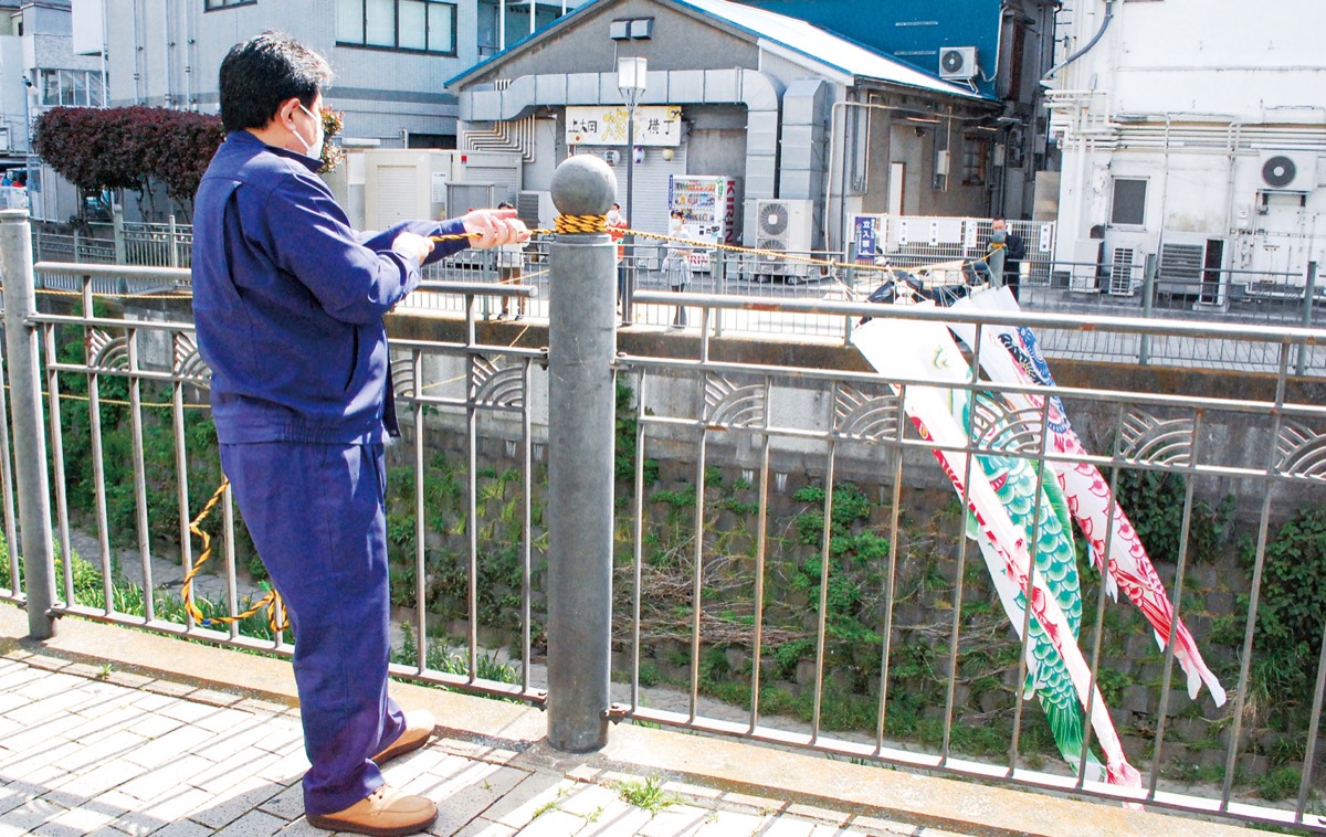 昨年は1回目の緊急事態宣言が発出され、人が集まるのを防ぐためこいのぼりの設置を行わなかった。今年は風物誌を復活させようと子ども会役員が奮闘。大久保橋と久保橋付近の両岸に子ども会役員がロープを渡し、そのロープにこいのぼりを通し大岡川の上を泳ぐように演出した。