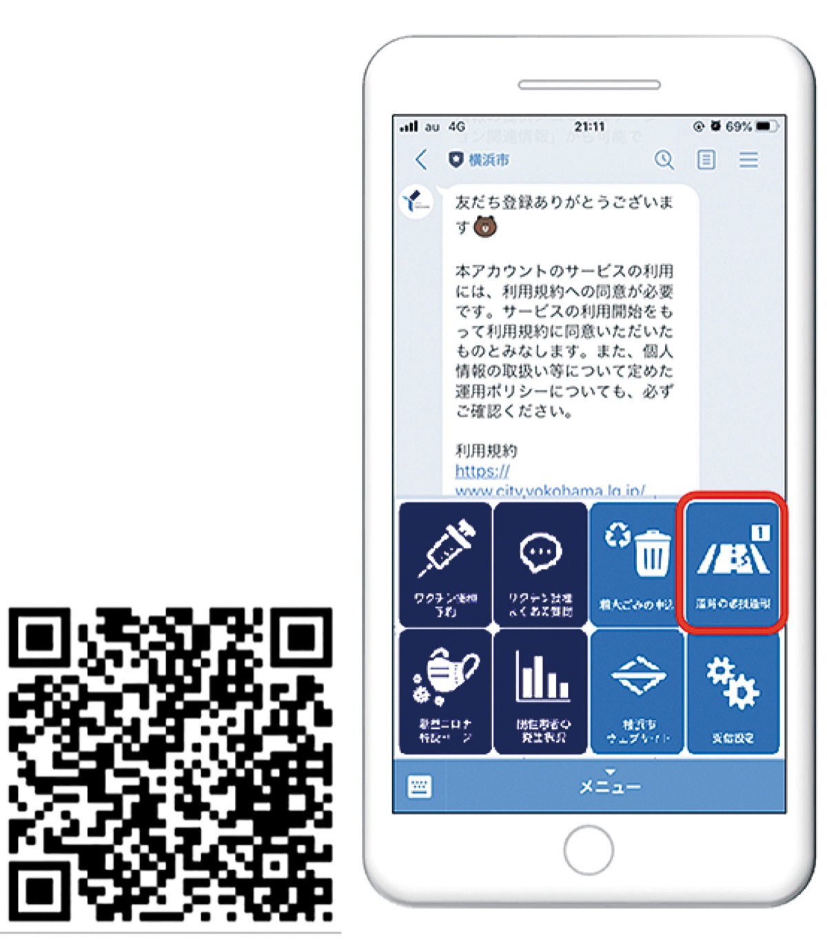LINEを通しての情報提供や修繕要請は市の公式アカウントを友だち追加することで利用可能。24時間受け付け、道路の陥没や土砂崩れ、倒木といった緊急性を要する対応が必要な場合はこれまで通り、各区の土木事務所での電話による通報受付も継続する。