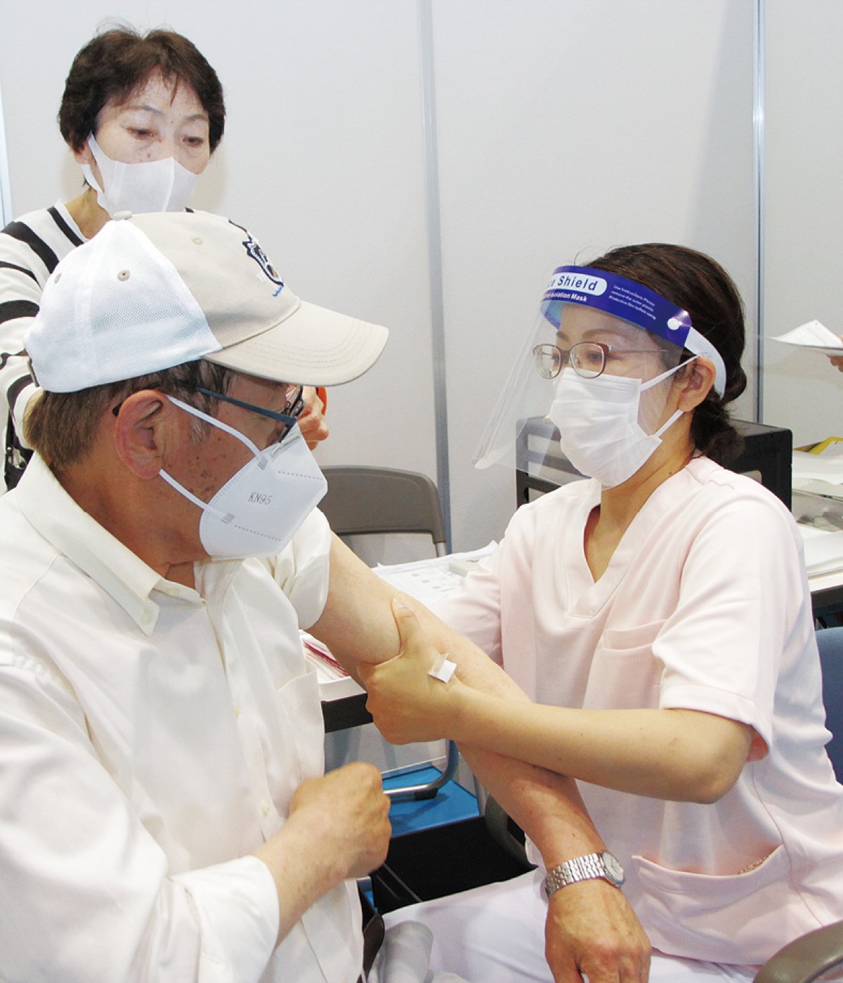高齢者を対象とした市の新型コロナウイルスワクチン集団接種が5月17日から始まった。同日開所した青葉公会堂と青葉スポーツセンター会場が報道陣に公開された。
