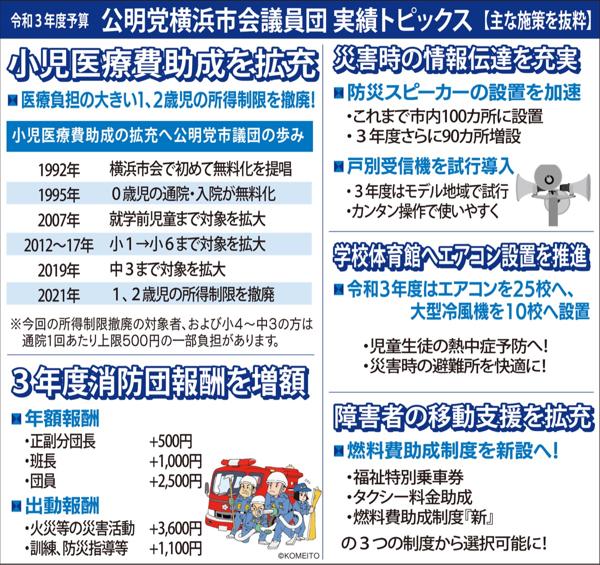 令和3年度予算で、公明党横浜市議団の提案・要望が多数実現していますので、下記に抜粋してご報告いたします。