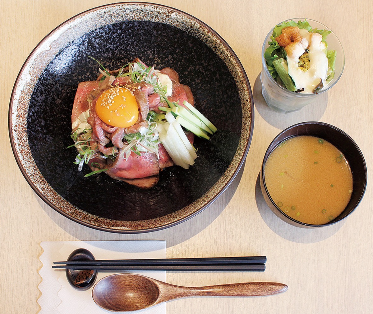 9月は栄区の食材を使用し、横浜市庁舎内の商業施設「ラクシスフロント」2階の「TSUBAKI食堂」(中区)が「浜なしと和牛ローストビーフのユッケ丼」を15日(水)まで数量限定で販売する。価格は1500円税込(※ランチタイムとディナータイムで提供形式が異なる場合あり)。