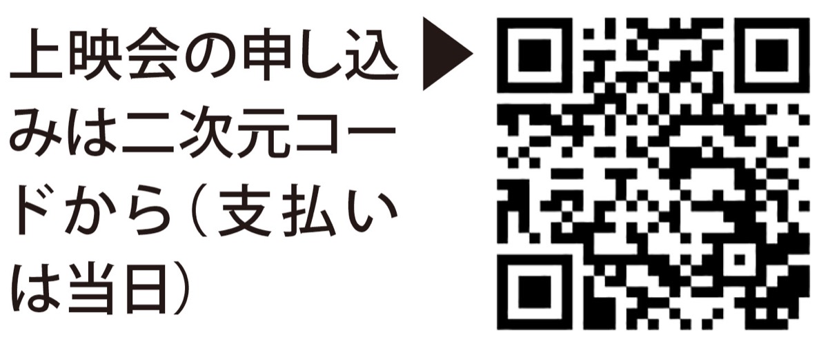 上映会は10月16日の午前10時からと午後1時半からの2回。開場はそれぞれ15分前。入場料1000円(※中学生以下無料)。申し込みは【メール】oyako2101@yahoo.co.jpへ名前とチケット枚数を伝え、当日受付にて入場料を支払う。上記二次元コードでも申し込み可。
