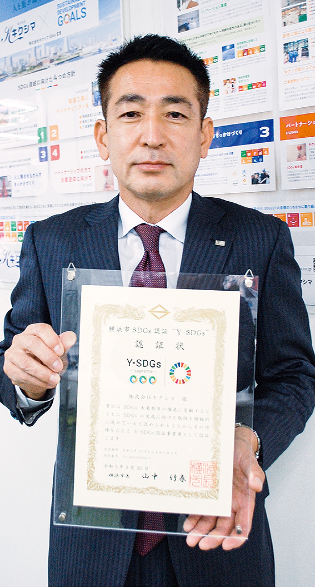 持続可能な17の開発目標「SDGs」の達成に向けて活動している企業や団体などを横浜市が認証する「Y-SDGs」の第4回認証事業者がこのほど発表され、港南区の総合建設業、(株)キクシマ(菊嶋秀生代表取締役=本社・港南台4の39の7)が最上位「スプリーム」に選ばれた。港南区の事業者が最上位認証になったのは初めて。