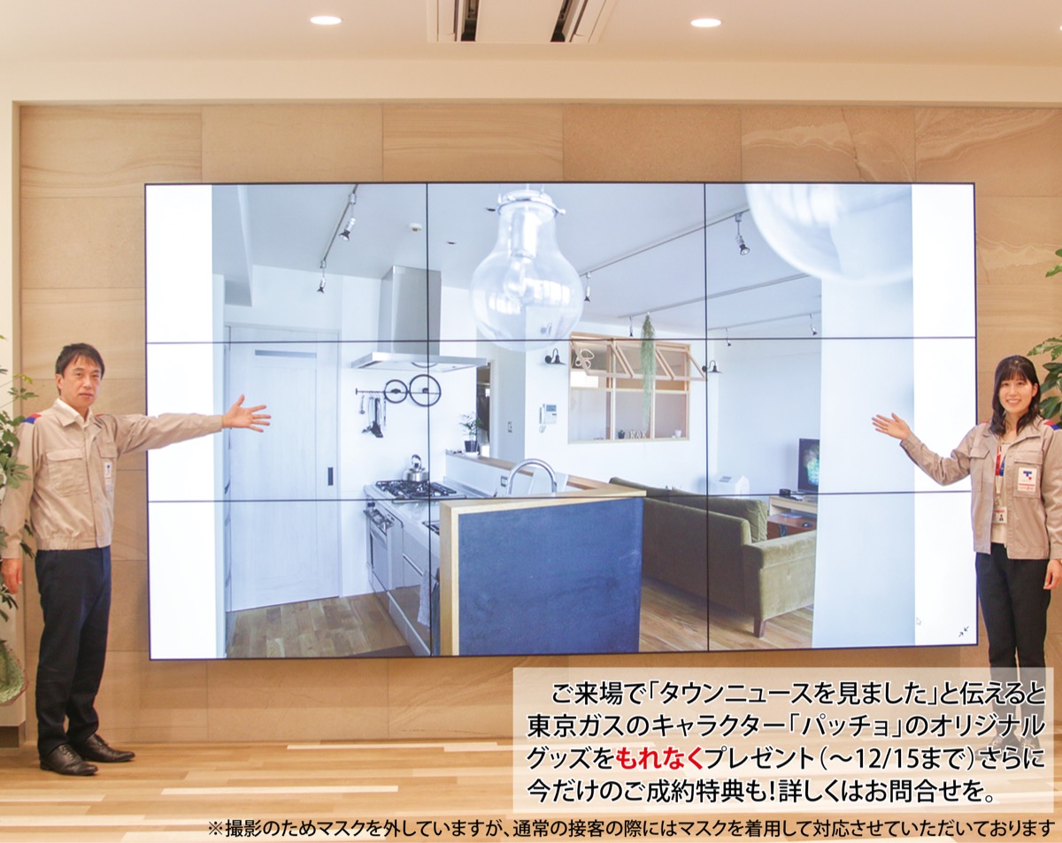 港南区丸山台の東京ガスエコモ株式会社(杉浦誠代表取締役社長)がこのほど、本社ショールームの大規模なリニューアルを完成させた。目玉は新たに導入した3・6m×2mの大型モニター。担当者は「県内のリフォーム会社の中でもおそらく唯一の設備なのでは」と力を込める。
