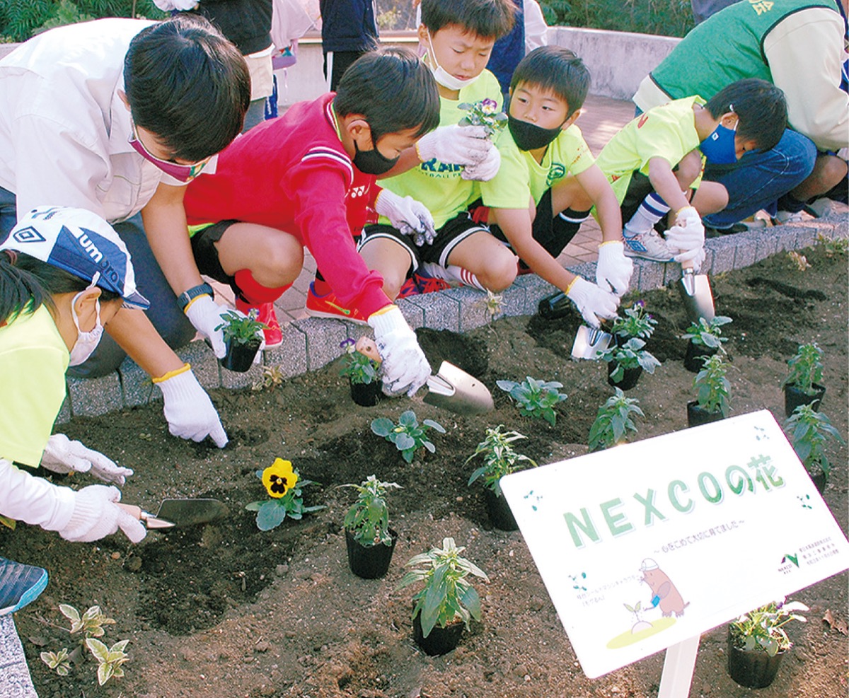 同事務所は沿線地域の環境美化など社会貢献に資する取り組みとして、パンジーやビオラなど300株を寄贈。当日は公田サッカークラブのメンバーらが花を植えた。