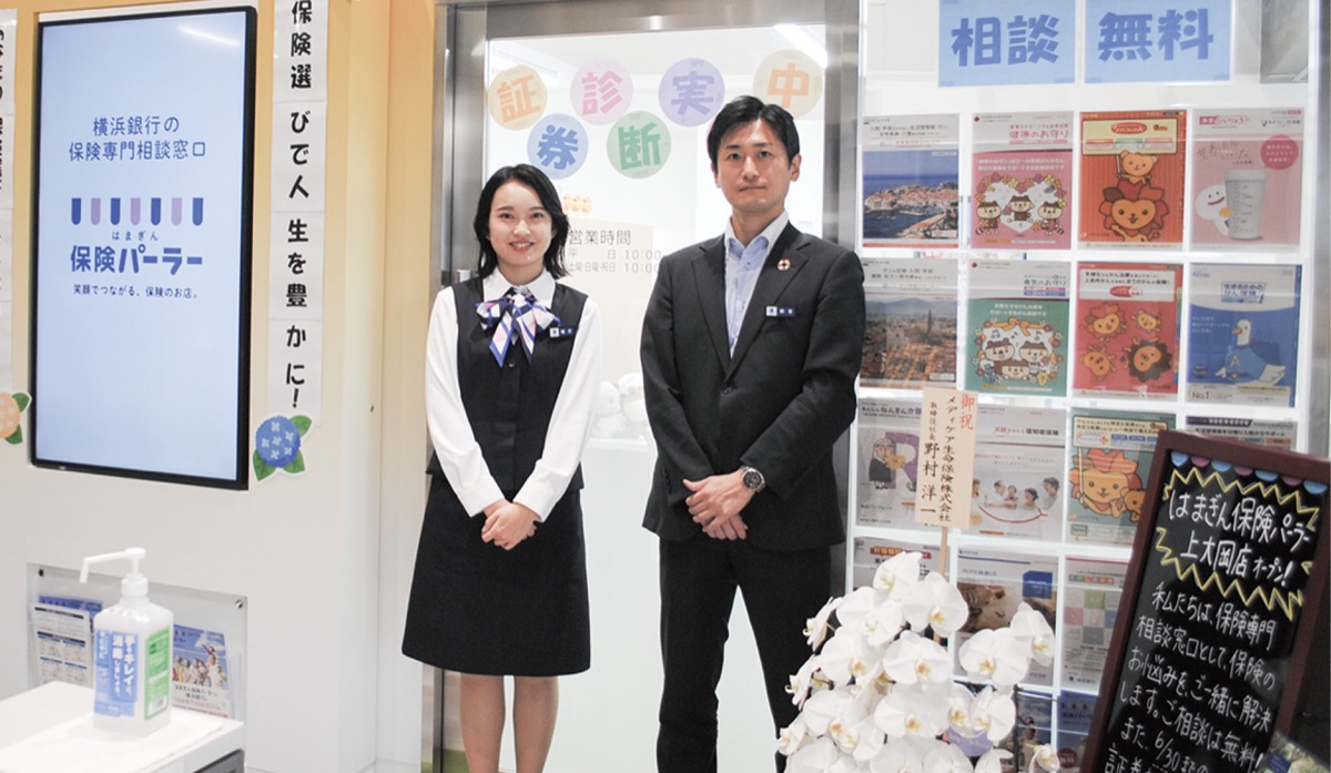 横浜銀行の保険専門相談窓口の4号店「はまぎん保険パーラー上大岡店」(朝倉健太郎店長)がこのほど、上大岡駅から徒歩1分の横浜銀行上大岡支店内1階に新規開店した。
