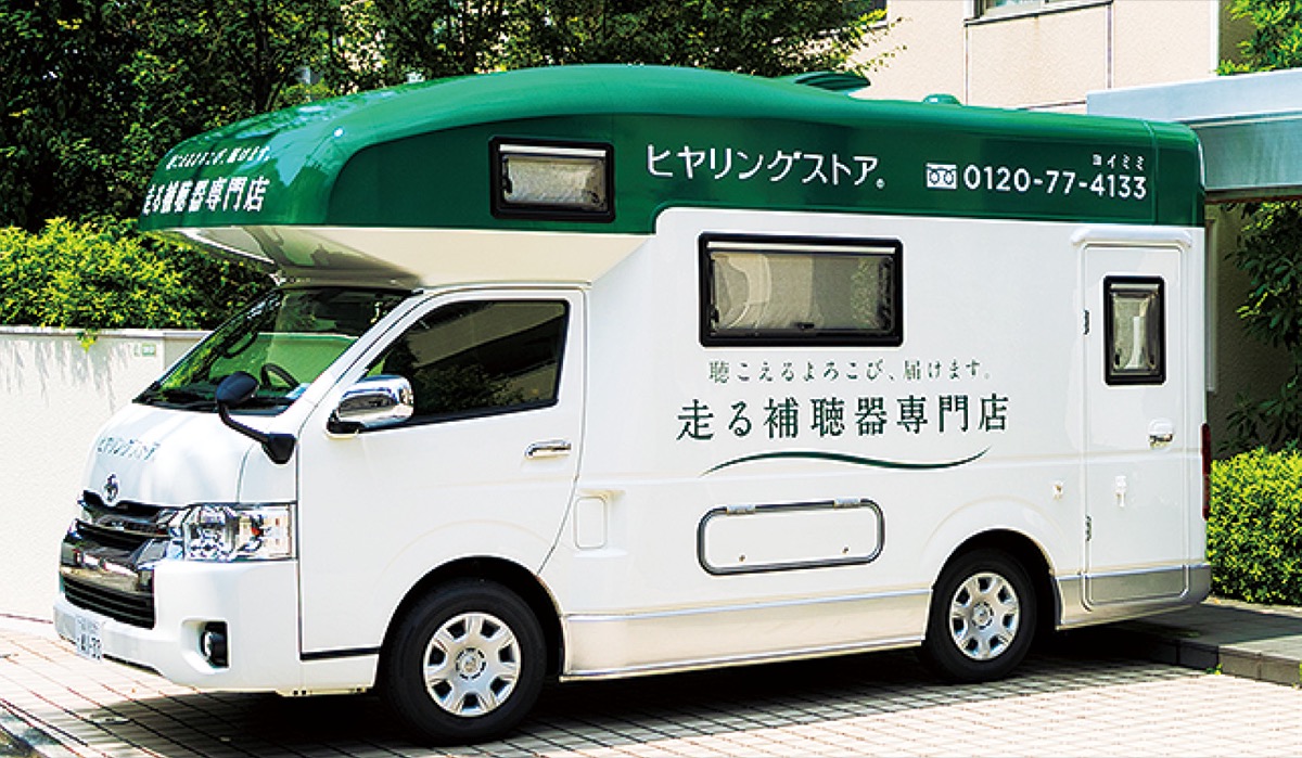 最新設備と聴力測定室を完備した専用車で”補聴器のプロ”が自宅へ訪問。悩みや不安、希望を聞いた上で、聞こえの状態を正しく測定し、提案してくれるので安心だ。