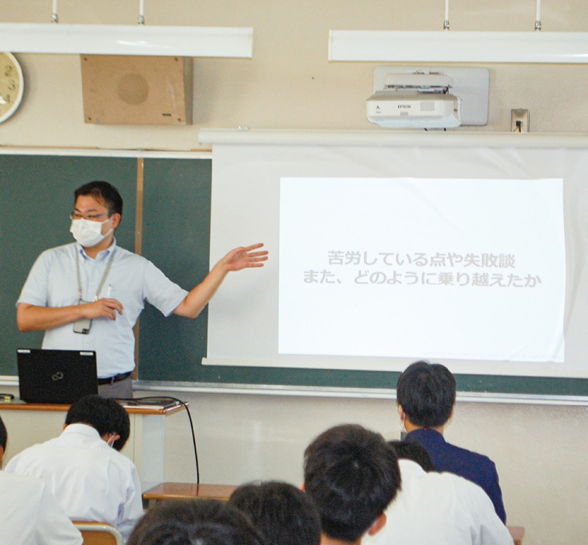 日本政策金融公庫で営業職に従事する佐藤俊太さんは、自身の経験などを話したのち「若い時に色々なことに挑戦し、人間的な成長をしてほしい」とエールを送った。