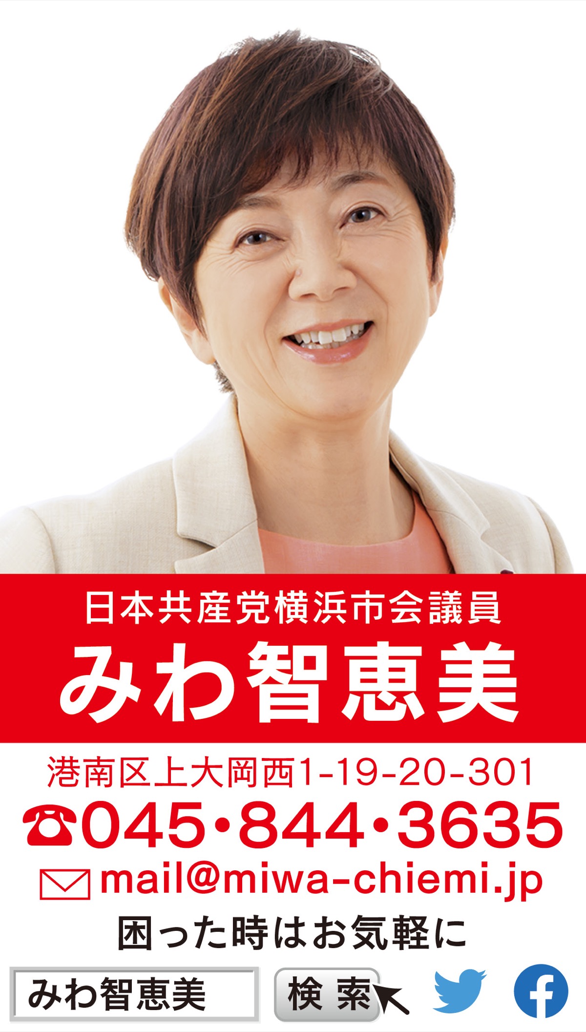 国同士がいがみ合ったとき、その国の人の顔が街が思い浮かび、「戦争は殺し合い。絶対にダ メ」と両手を広げて他国 民の前に立ちふさがるのは、私たち市民ではないでしょうか。核兵器は無惨で恐ろしく、決して再び使ってはいけない凶器と知っているのは被爆国国民の我々です。横浜市議会は1984年に非核兵器平和都市宣言に関する決議を上げ、2018年に横浜市国際平和の推進に関する条例を全会一致で採択しました。市会議員の一人として、国際平和・核兵器廃絶に向けて声を上げていきます。