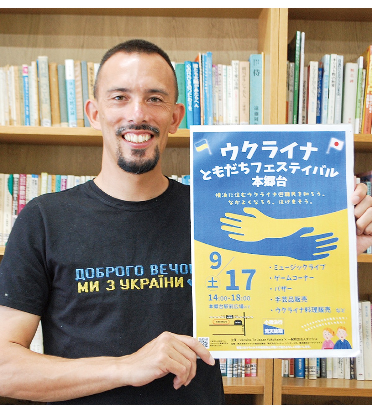 栄区飯島町の一般財団法人オアシスとUkraine To Japan Yokohamaの共同主催で9月17日(土)、「ウクライナともだちフェスティバル本郷台」が本郷台駅前広場で開催される。ウクライナからの避難民と地域住民の交流が目的で、取り組みを通じた支援や理解の広がりが期待される。