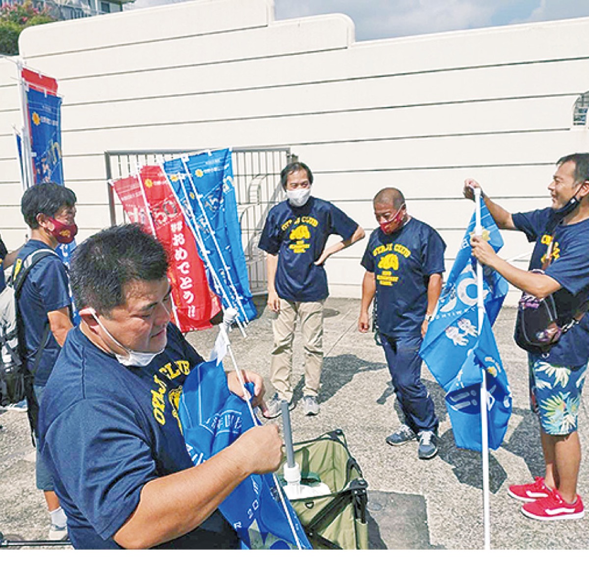 旗のデザインは同会のメンバーが担当。同校の教職員らがプリントされた旗は、全て異なるデザインだという。旗の完成が遅れるといったトラブルも乗り越えて、なんとか設置にこぎつけた。