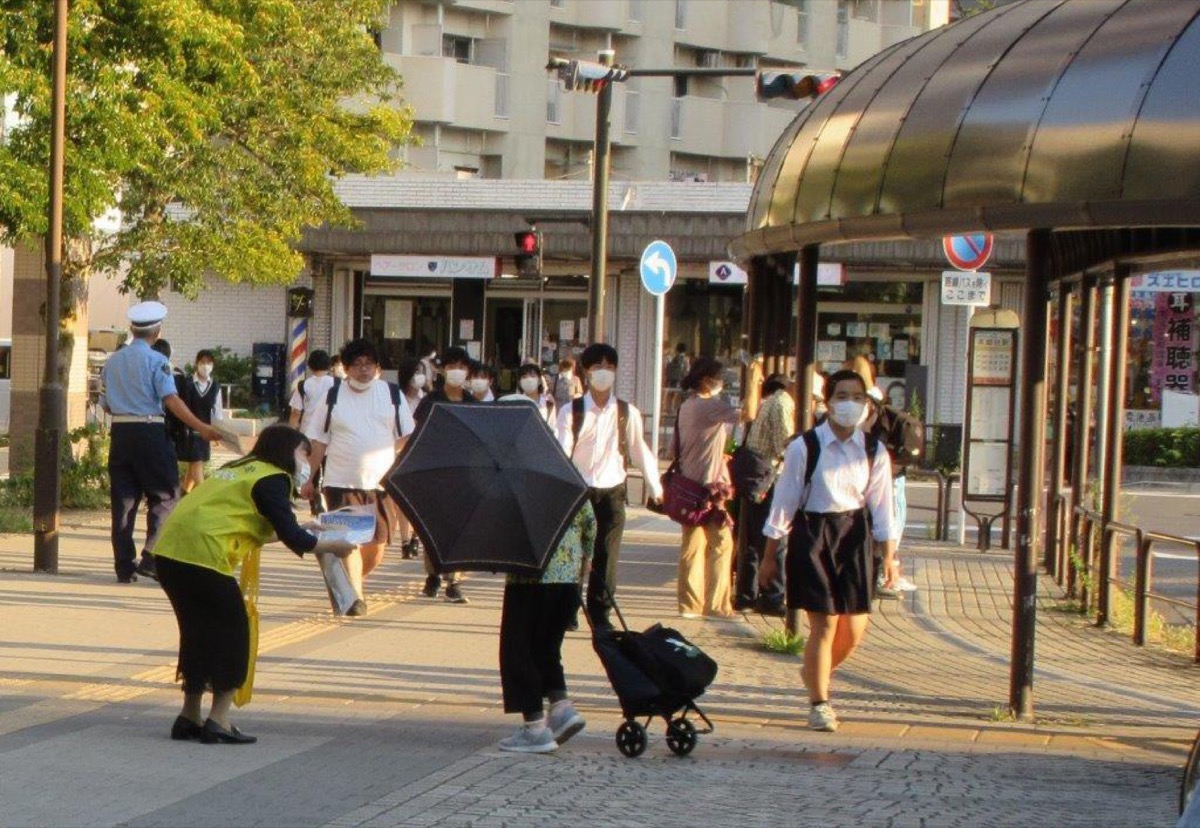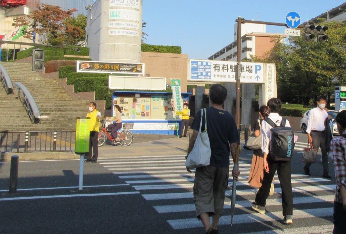 「交通事故死ゼロを目指す日」の9月30日薄暮時間帯に、本郷台駅自転車駐車場付近で「横断歩行者保護誘導活動」および「自転車利用者の交通安全広報活動」が行われた。