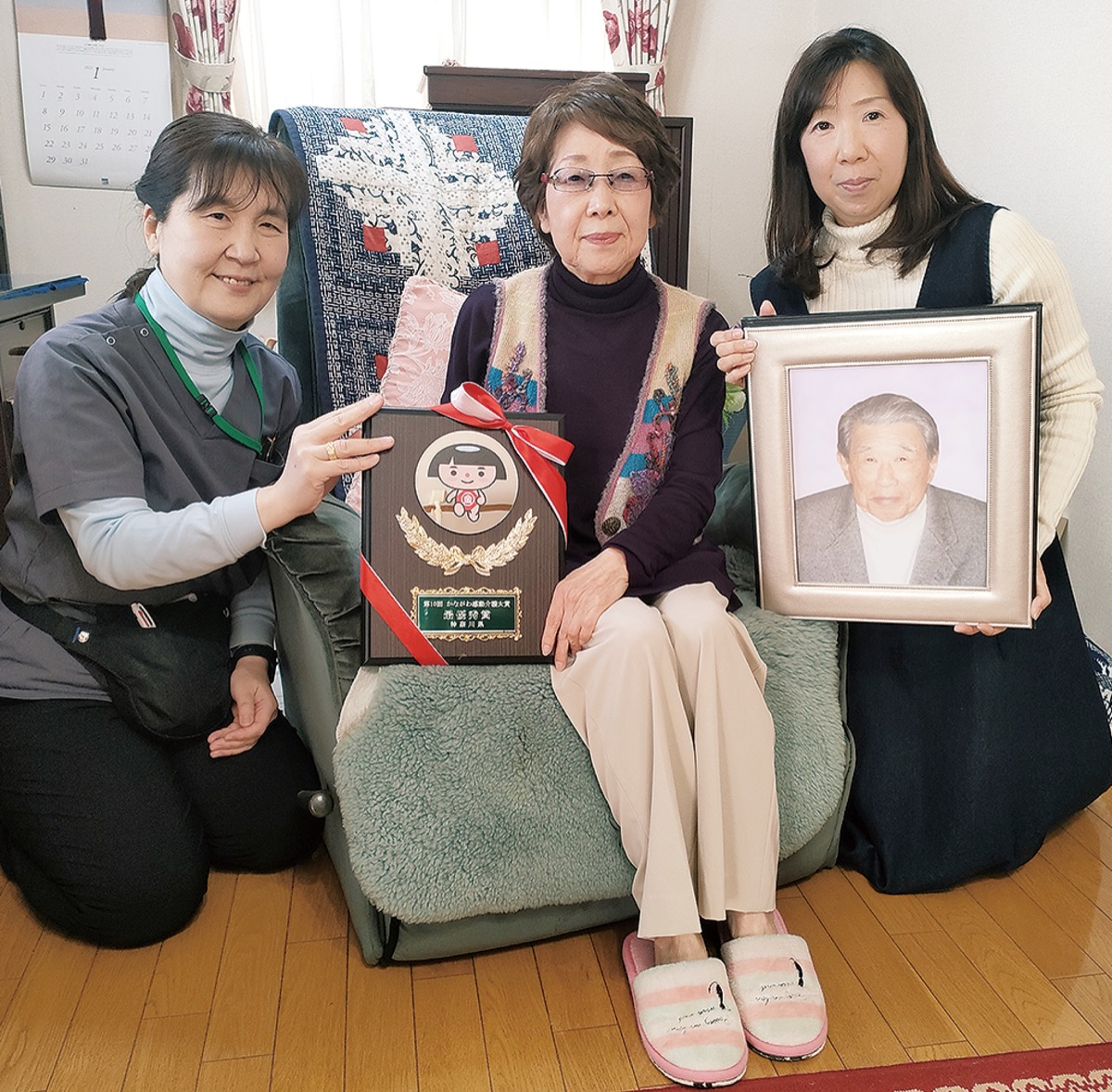 梅澤さんは、月に数人の利用者との別れを経験する。その中で吉備さん一家との出会いは「私たちもどう対応するべきか勉強し、吉備さんと一緒に成長することができた」と施設としてかけがえのない経験だったという。吉備さんは「賞をもらえて夫に良い報告ができた」と啓陽さんの写真を眺め、笑顔を見せた。