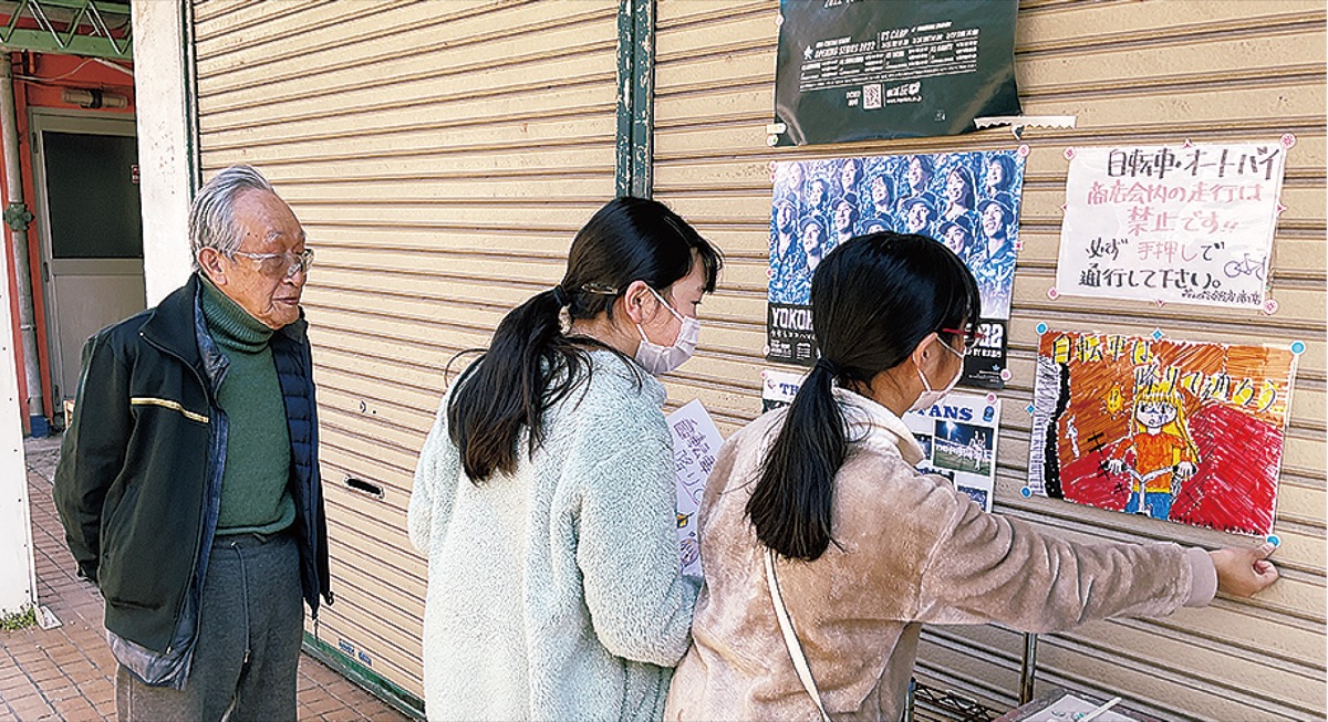 会長とのインタビューの中で、商店街内では自転車を降りて押して通行する規則を守らない人がいることが判明。小河原会長から交通安全ルールを促すポスターの作成を依頼され、児童らがオリジナルポスターなどを作ることになった。