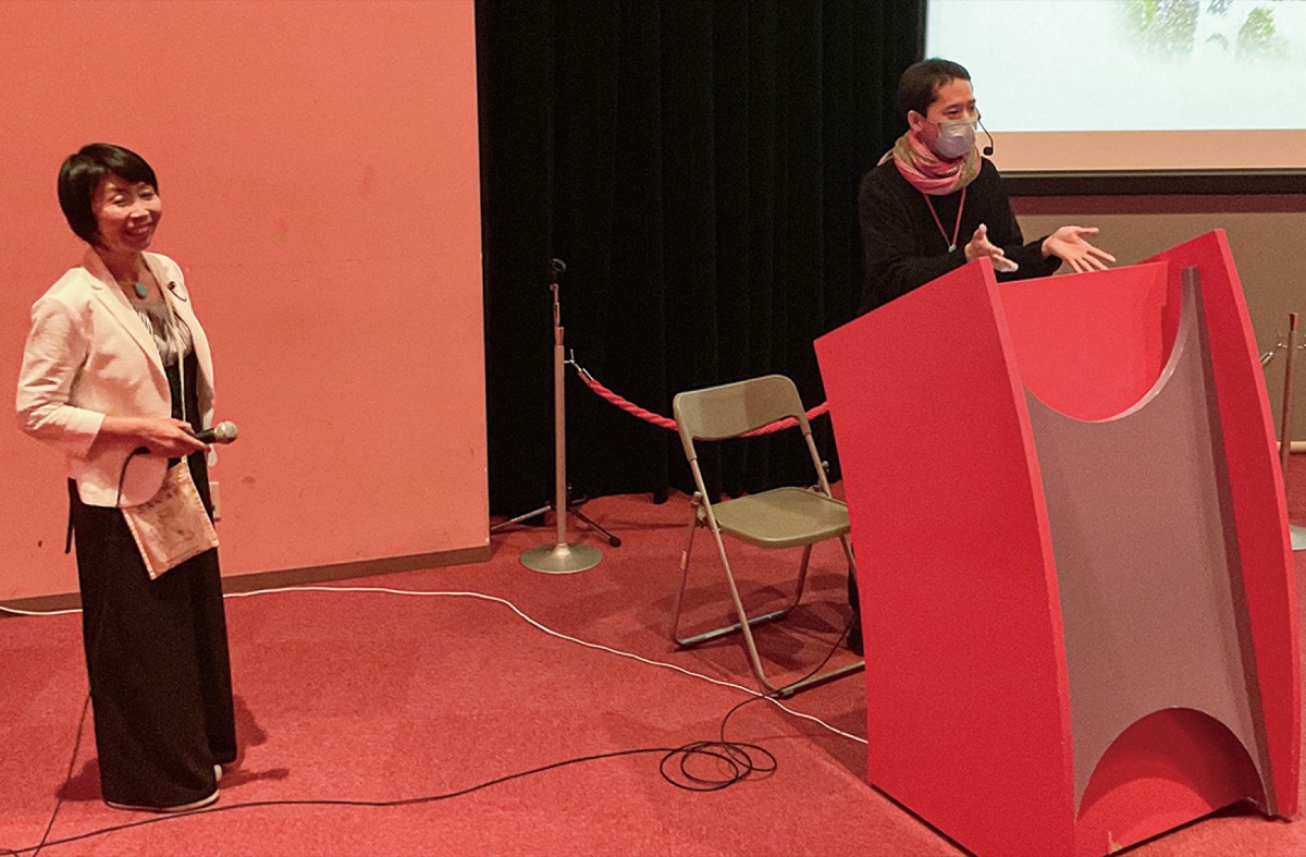当日はあーすぷらざの指定管理者である(公社)青年海外協力協会(JOCA)職員の塚越敦さんが、同所の魅力についてオンライン含む参加者約30人に伝えた。塚越さんは貸しホールや無料の映像ライブラリー、国際平和を学ぶ展示室などについて説明。輿石代表は「皆さんと一緒に企画を立てて、あーすぷらざを盛り上げていきましょう」と語った。