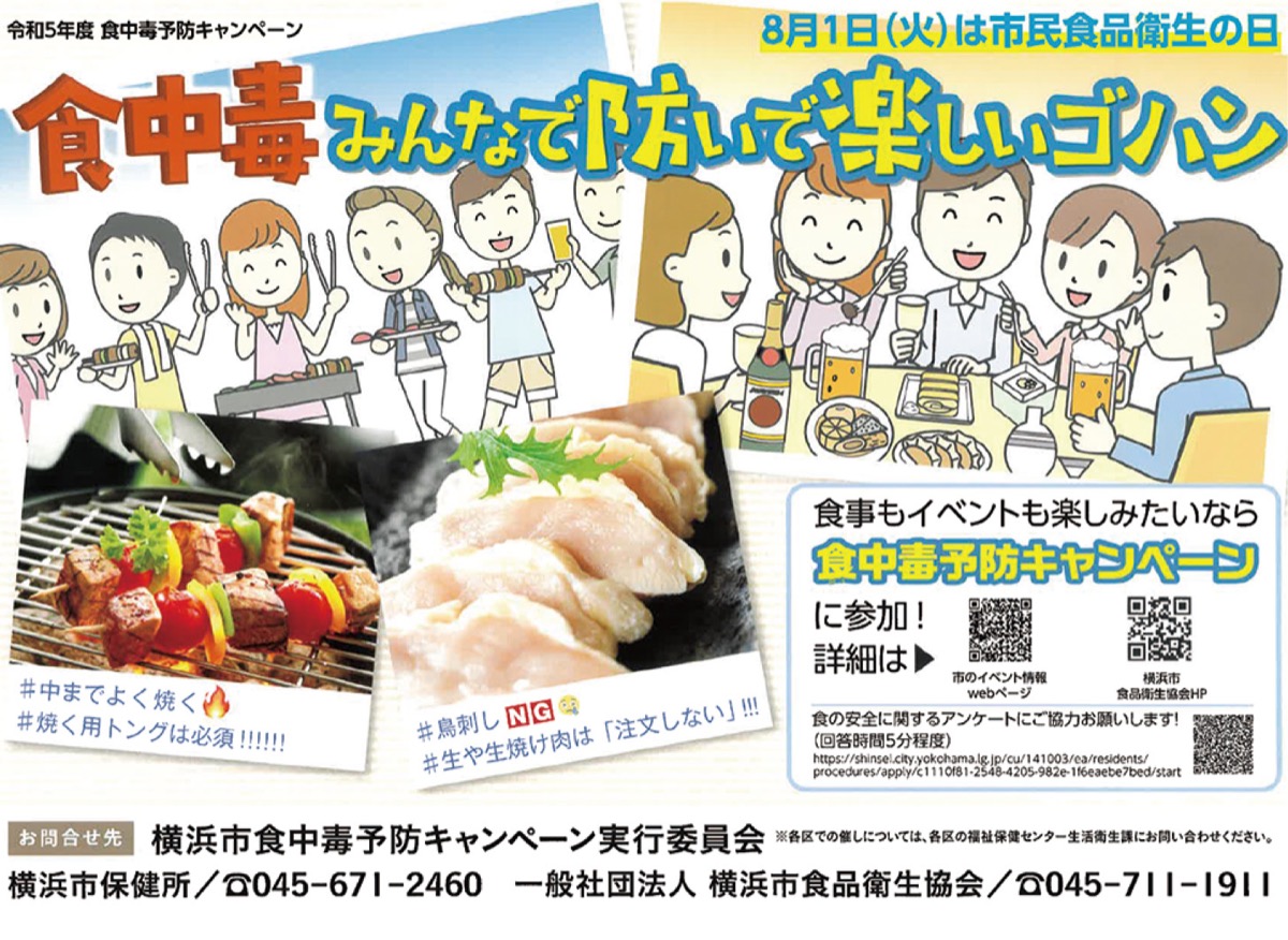 催しは「食中毒ゼロ」を目指して横浜市が定めている8月1日の「市民食品衛生の日」の前後に、市内各所で行なわれるキャンペーン=写真=の一環。