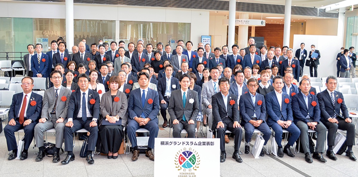 横浜市が地域に貢献しながら経営に取り組む企業を称える「横浜グランドスラム企業表彰」の表彰式が6月27日、市役所で行われた。今回が初めてとなる同表彰には市内79社、港南区からは6社、栄区は2社が選出された。