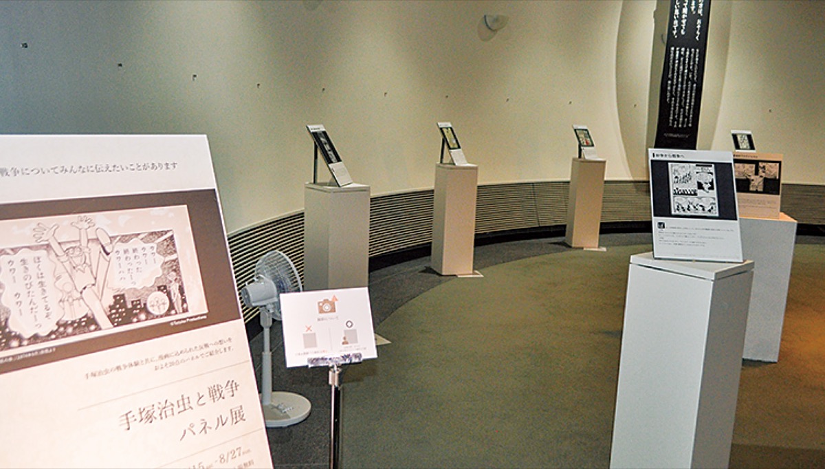 子どもでも親しみやすい漫画を通じて戦争と平和について考えてほしい、と同館が企画したもので、手塚プロダクションが監修。