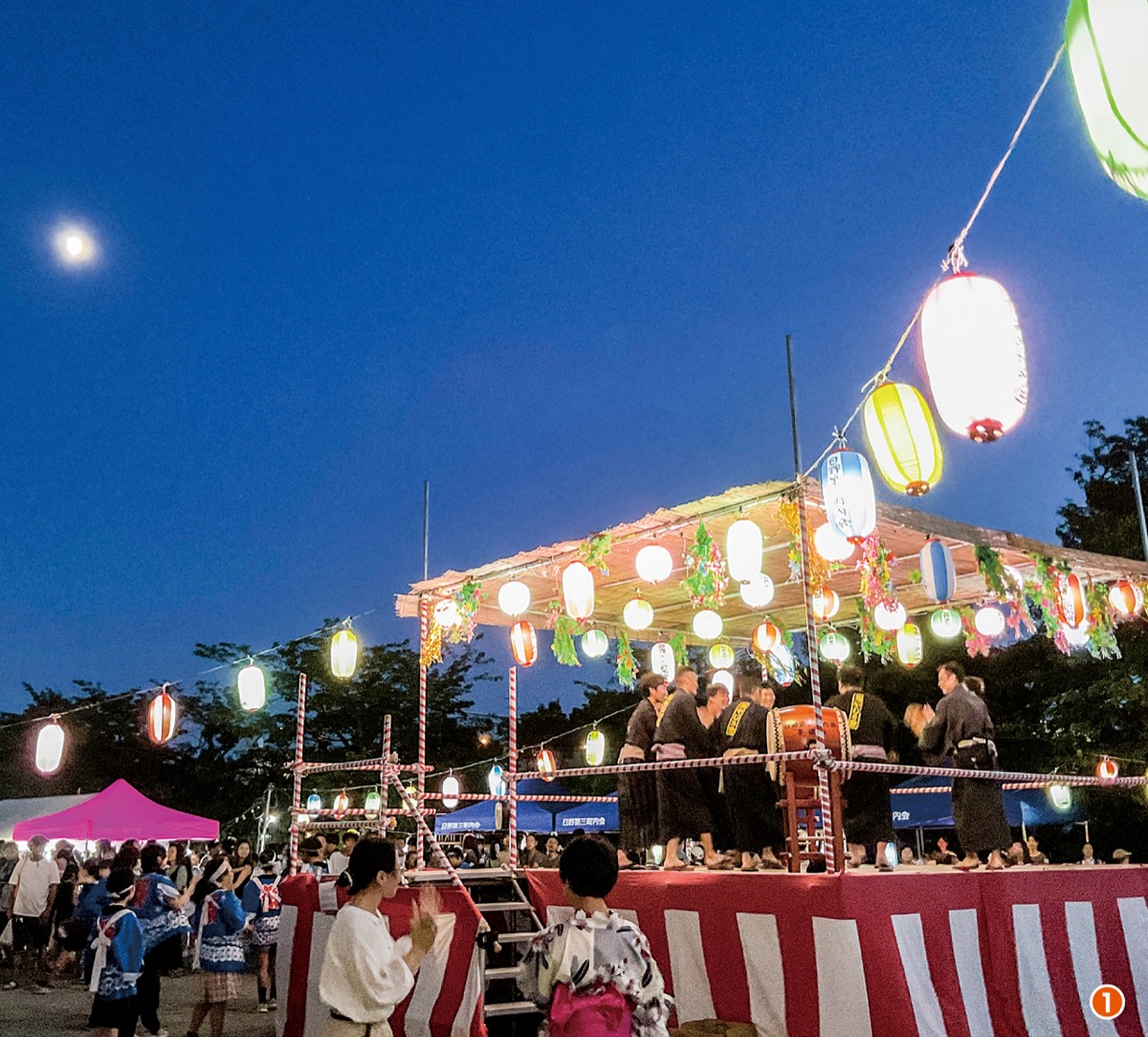 上郷西連合町会は、7月29日・30日に「夏祭り盆踊り大会」をいの山東公園グラウンドで実施。同連合所属の各自治会による飲食ブースなどが並んだ。