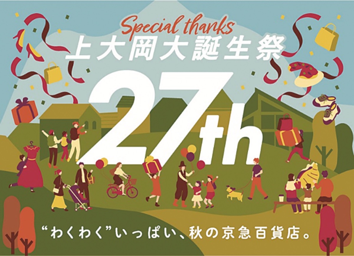 10月1日(日)に開店27周年を迎える京急百貨店は、”わくわく”上大岡大誕生祭を開催中だ。既に始まった「北海道選べる抽選プレゼント」は対象売場で5千円(税抜)以上の買物(※諸条件あり)で北海道 小樽・札幌の旅や北海道グルメを抽選(10月9日迄)で進呈。また、3〜7階の対象売場で当日『27円税込』の購入レシートで270人に『新宿中村屋 幸せのサクサクパイ』を進呈(10月1日10時〜)。惣菜売場では18日迄、『ありがとう弁当』等を販売。(問)同店【電話】045・848・1111