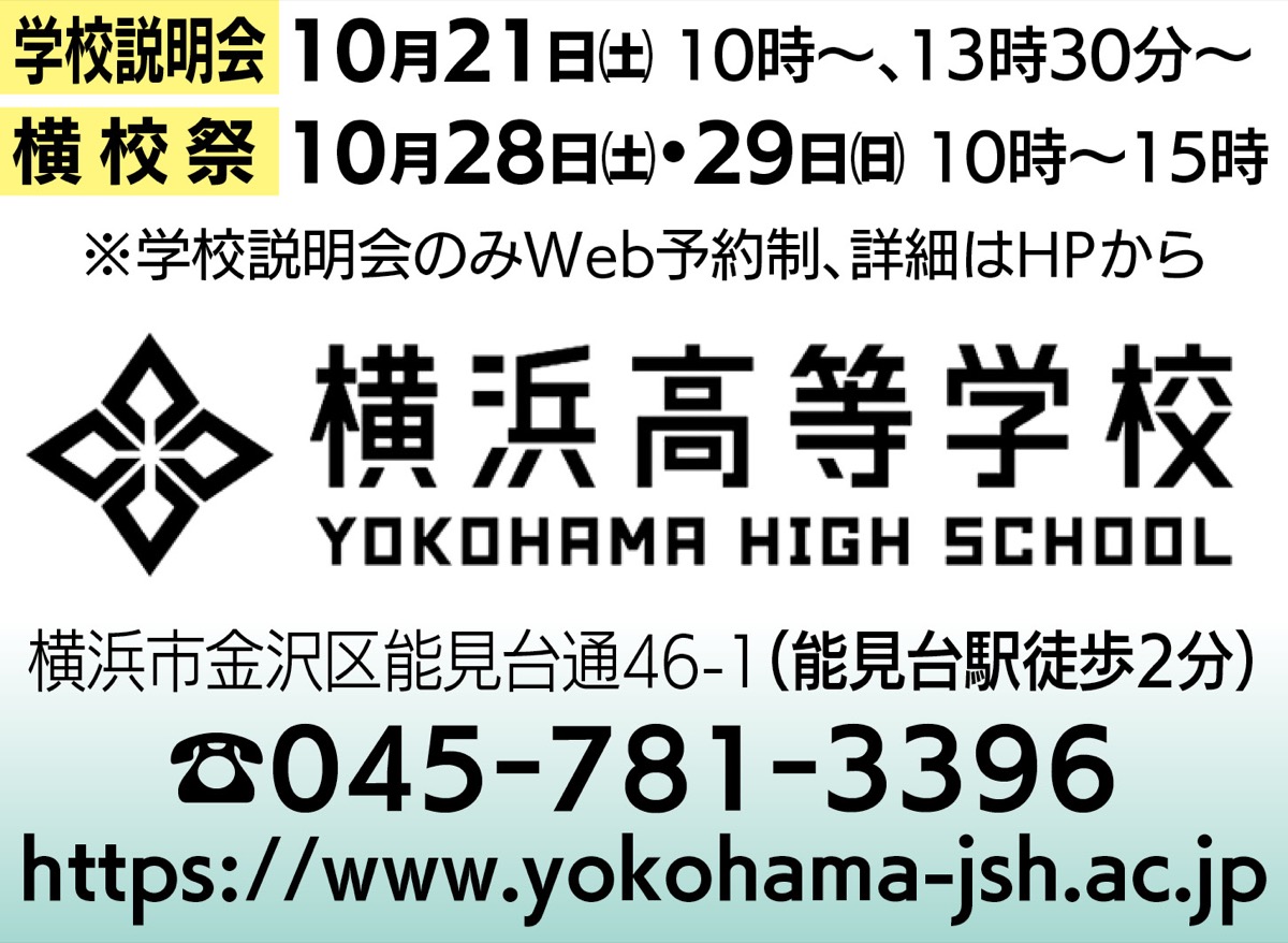 10月9日(月・祝)に市内の私立高校7校が横浜高に集まる合同入試相談会を開く。午前10時から午後2時30分。また、28日(土)・29日(日)は「横校祭(文化祭)」を開催。どちらも予約不要、入退場自由。「活気ある明るい雰囲気をぜひ感じてください」と館山教頭。