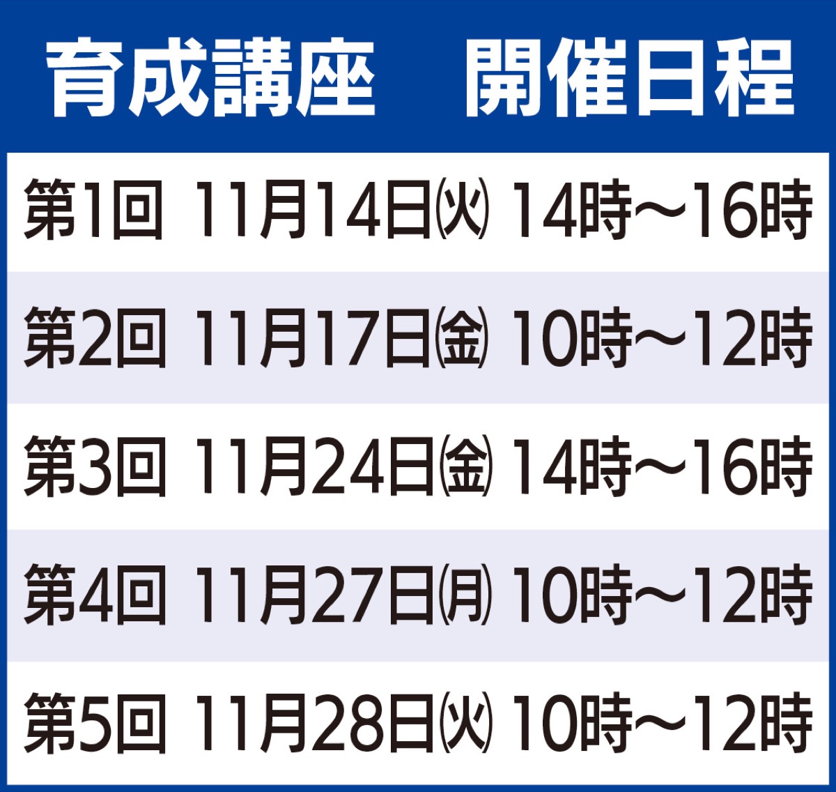 講座内容は第1回「相談サポートスキル」、第2・3回「スマートフォンの基礎知識」/カメラ、アプリ操作、LINEの基本操作など、第4回「講座サポートスキル」、第5回「まとめロールプレイング」を予定している。持ち物は個人所有のスマホ(機種は問わず)。申込みは10月27日(金)まで。問い合わせは区政推進課【電話】045・847・8327へ。