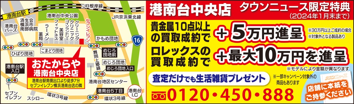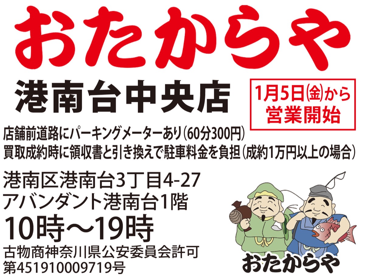 「おたからや港南台中央店」は昨年11月、港南台駅徒歩約7分の場所にオープン。長年、査定経験を積んできたスタッフが、2024年も丁寧かつ安心の査定品質を提供する。