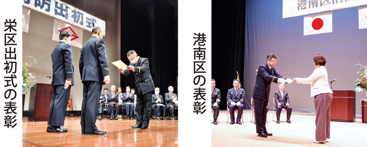港南区【一般消防功労者】▽消防局長表彰/芹が谷連合自治会、西洗自治会、(株)相鉄ビルマネジメント運営事業一部港南台営業所▽消防署長表彰「地域・企業」/広地町内会、港南台ひばり団地自治会ひばり救援隊、あざみ町内会、日野団地自治会、東戸塚アーバンコンフォート町内会、上大岡ゆう保育園、県立横浜明朋高校、横浜緑地・アライグリーンパートナーズ日野中央公園、市資源循環局港南事務所▽同「家庭防災員」/笹下台団地自治会 常松麻奈美、第二笹下ハイツ自治会 相田信孝、日野ヶ丘町内会 笠原純【永年勤続消防団員】▽県知事・市長勤続20年表彰/岸孝子▽市長勤続30年表彰/蜂巣正勝▽消防局長・消防団長勤続10年表彰/大津雅人、佐藤誠、池森義之、高橋靖子、田口睦、黒田義一、北見智幸、黒田亜季、橋本美羽、松永美里、町田麻衣子、小玉聡【優良消防団員】▽市長表彰/大津雅人、森宏司、笠原修、北見孝幸、根本光浩、皆川亜希子▽消防局長表彰/金子准、笠原修、北見孝幸、荒井浩明、坂井正俊、内倉信夫▽消防団長表彰/若林和夫、山本延江、田口睦、篠原善太郎、飯田泰行、今泉裕揮【消防団員家族表彰】榊健二家族、鈴木宏樹家族、相原千代子家族、小原澄子家族、太田寛家族、山田真理子家族