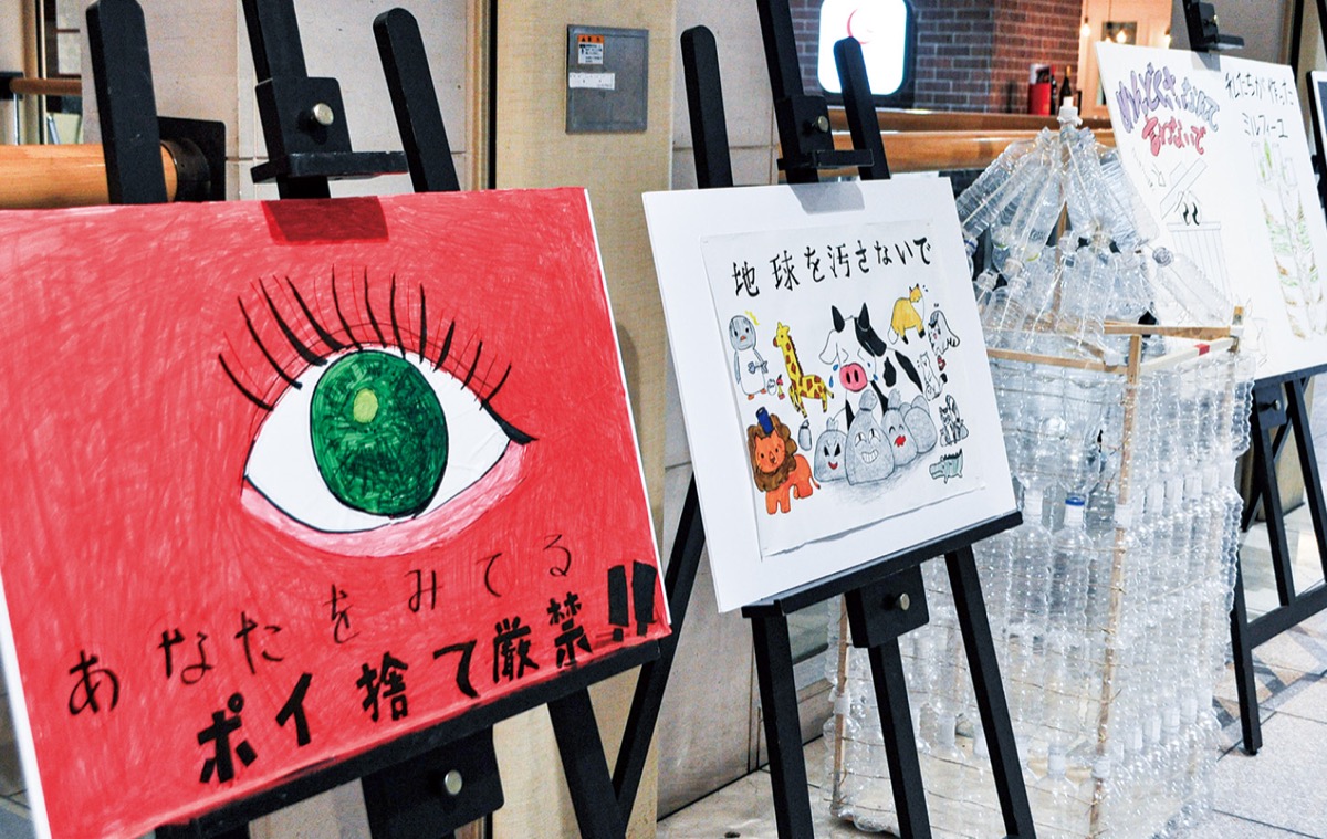 また、残る19人はSDGsの17目標にも多い環境問題について、ごみの削減を訴えるポスターを製作。12日から17日まで同店10階で展示を行い、学習成果を発揮した。
