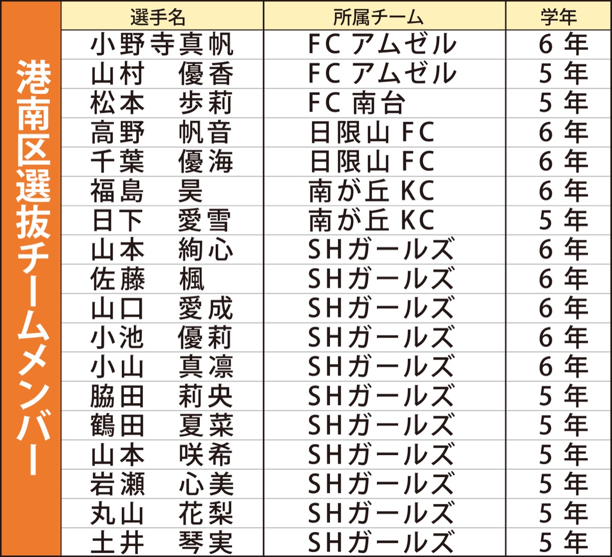 今年度の港南区選抜は港南区サッカー協会少年部に所属するチームから推薦された5チーム18人により結成。1月の関東大会に出場したSHガールズから最多の11人が選ばれるなど実力派が揃い、大会の1カ月前から練習に励んだ。