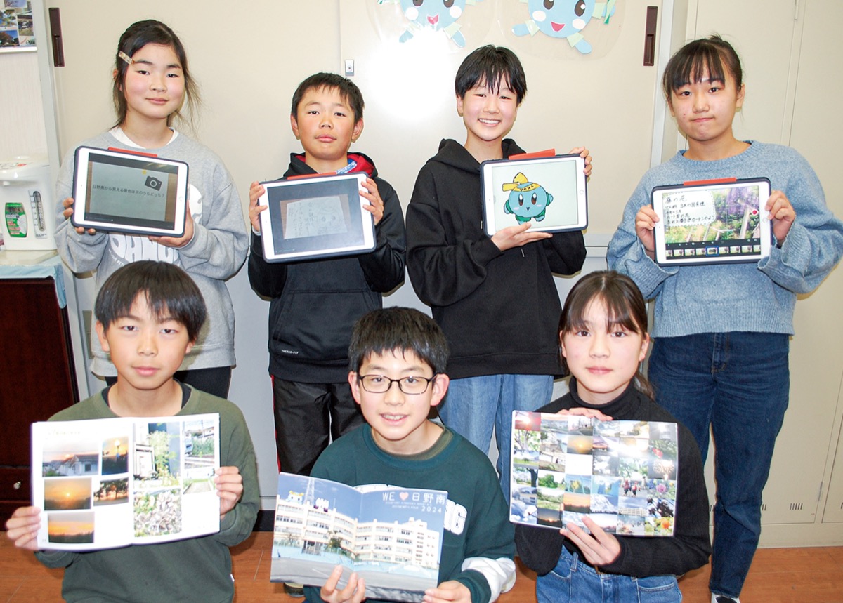 6年1組の児童が行ったのは、地域の人や魅力、学校の歴史などについて解説するパラデル漫画の制作。パラデル漫画とは、複数の絵や写真をつなぎ合わせることで、平面的な絵が3次元的に飛び出してくるように見えるアニメーション動画だ。「学校を盛り上げる面白いものを」との考えから、採用され、編集作業も児童が手掛けた。児童の一人は「天気がいい日に富士山が見えることは当たり前だと思っていたが、学ぶうちに日野南小の良さだと知ることができた」と話した。