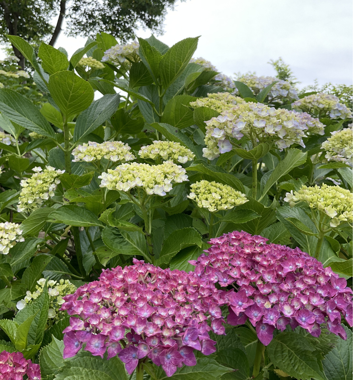上郷あじさいの丘は、野七里第一公園の向かいにあり、栄区のまちおこしボランティアグループ栄区「紫陽花の会」が2015年から、アジサイを植栽している場所。斜面一面に約200種、3000本が並ぶ。