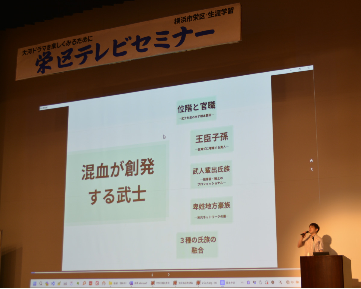 大河ドラマに合わせて毎年行われる講座は今回で36回目。今年は定員300人を上回る約400人の応募があった。参加した栄区在住80代の女性は「学校とは違った面から歴史を学べてよかった」と満足げに語る。村田委員長は「歴史に関心を持って、よりドラマを楽しんでもらいたい」と話した。