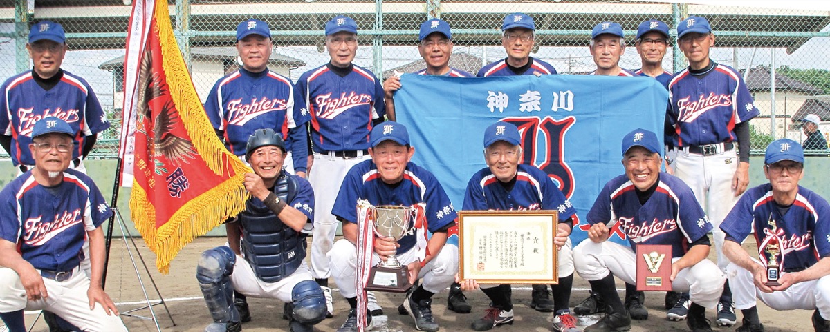 港南区の港南台南公園を拠点に活動する軟式野球チーム「横浜ファイターズ」のグランド古希チーム(75歳以上)が、5月に茨城県水戸市で行われた第20回関東グランド古希軟式野球大会で優勝し、連覇を達成した。