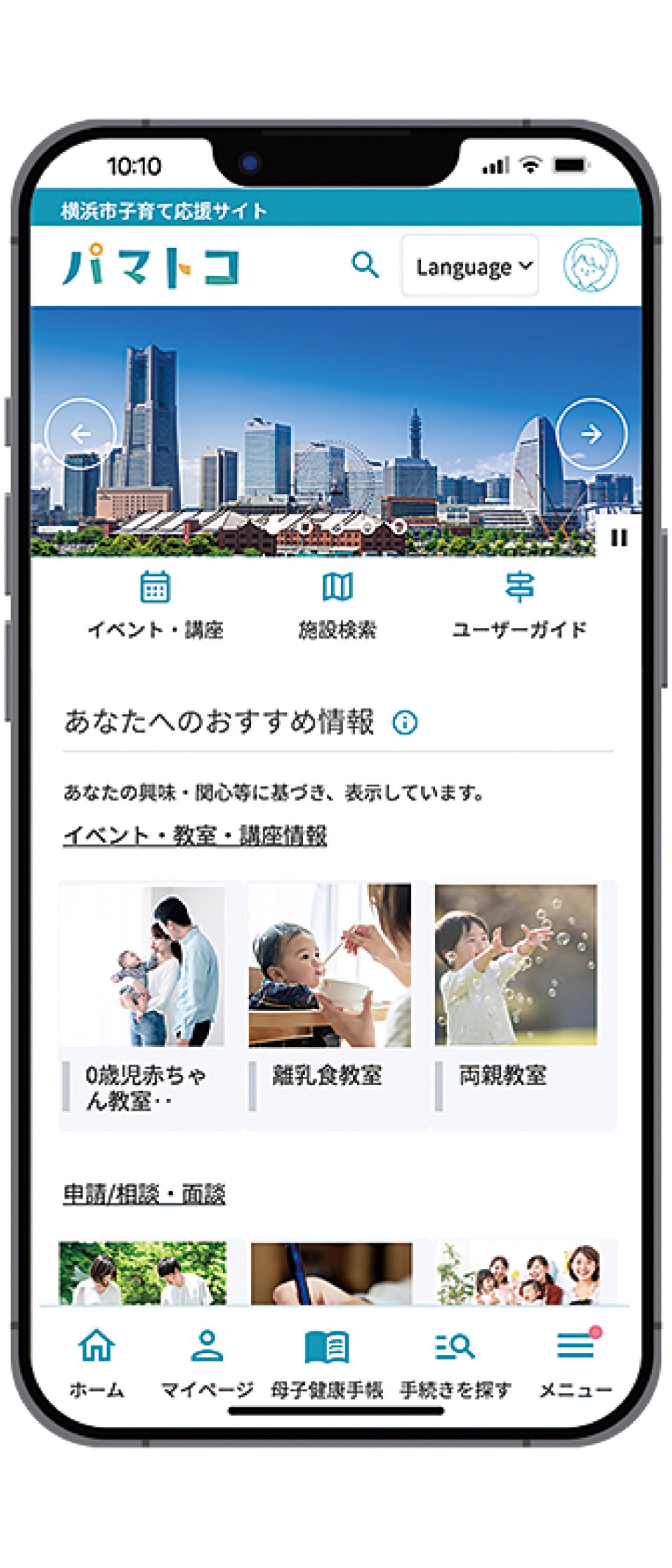 1つのサイト内で児童手当などの各種オンライン申請、地域のイベント情報の閲覧、公園、保育所、子育て支援拠点の検索などが可能になり、電子母子手帳の機能も搭載。1日午前8時からWEB版が運用開始となり、アプリ版を今秋にもリリースする予定だ。