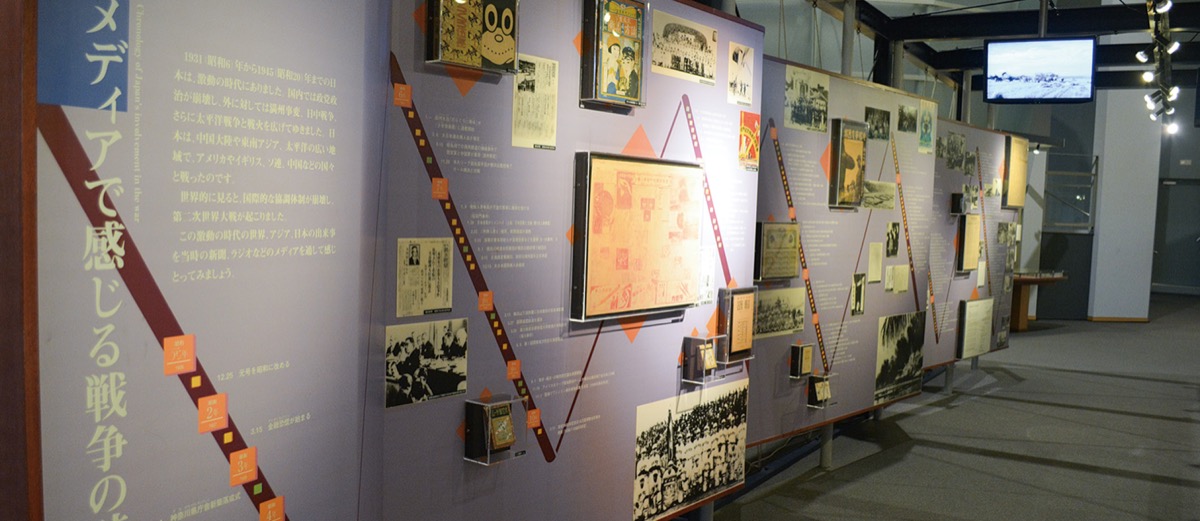 同展示室では日本と世界における戦争の歴史がわかる年表や、戦時下の暮らしぶりがうかがえる数々の資料が展示されている。展示品は約400点。一部は実際に触れることが可能だ。2階の映像ライブラリーでは、戦争に関連する書籍を合わせて読むことができる。