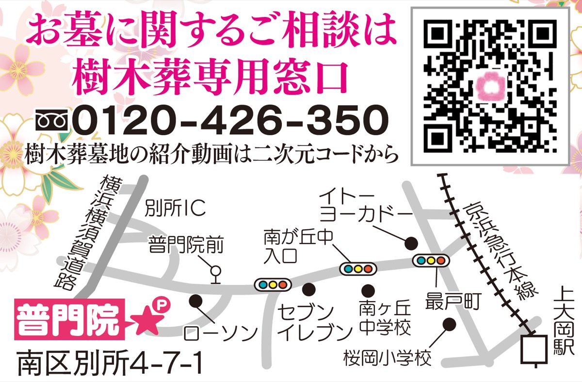 しだれ桜の名所、南区別所の「普門院」の樹木葬墓地が昨年3月の案内開始から大変好評で、残す区画はすでに三分の一程度になっている。