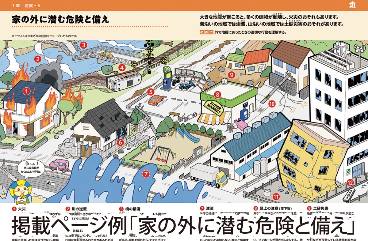 内容に関しては横浜市総務局危機管理室と横浜市消防局が監修し、教科書作りのノウハウを持つ東京書籍(株)が編集協力して作り上げている。2022年の初版から今年で第3版となり、内容も充実。震災の被害想定や被災時にとるべき行動、備蓄品などに加え、応急手当や風水害への備えなど防災全般を網羅している。